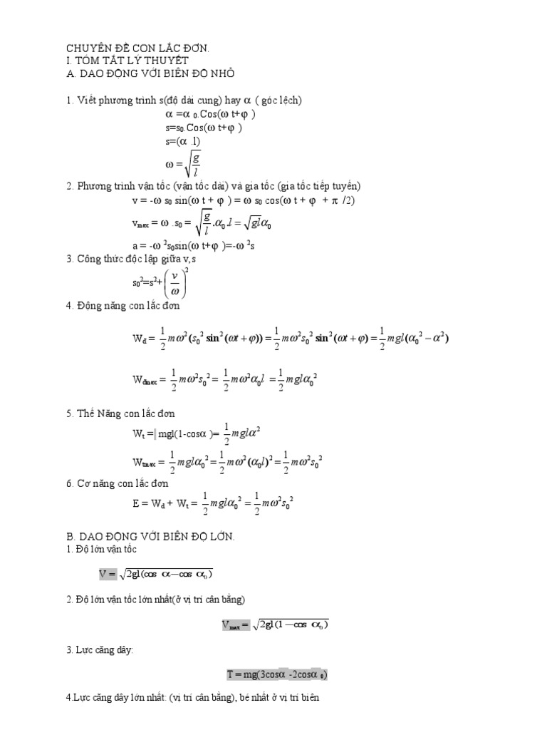 Ly Thuyết Va Cong Thức Tinh Nhanh Của Con Lắc đơn Trong Dđđh