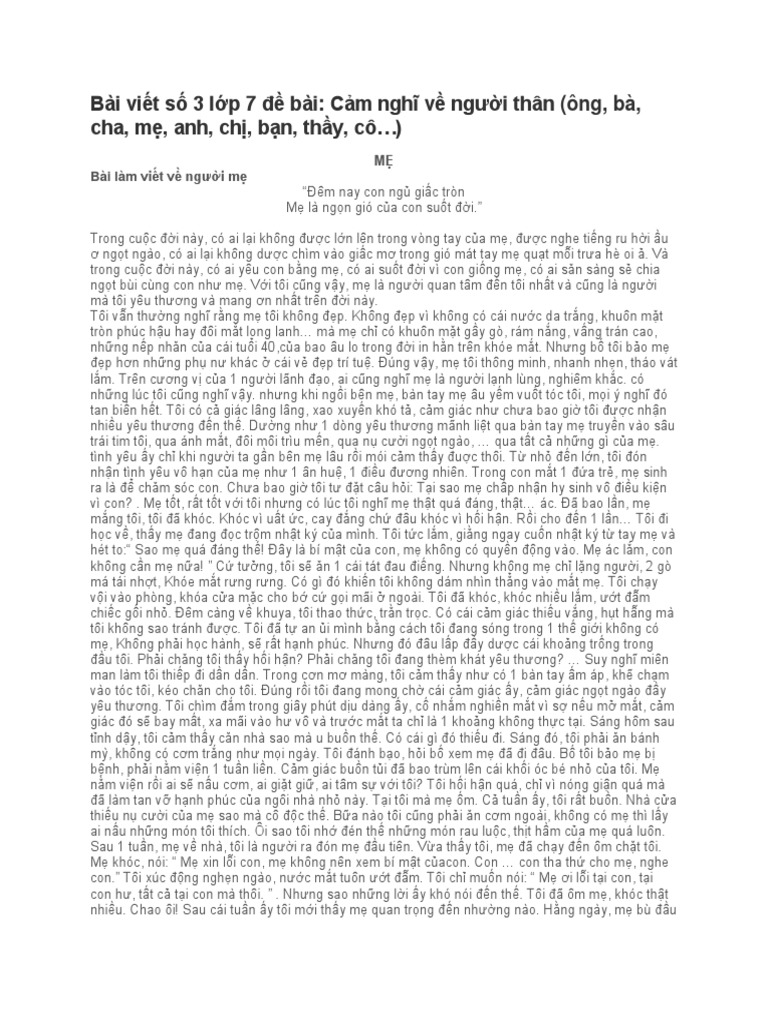 Bai Viết Số 3 Lớp 7 Cảm Nghĩ Về Người Than Văn Mẫu Lớp 7