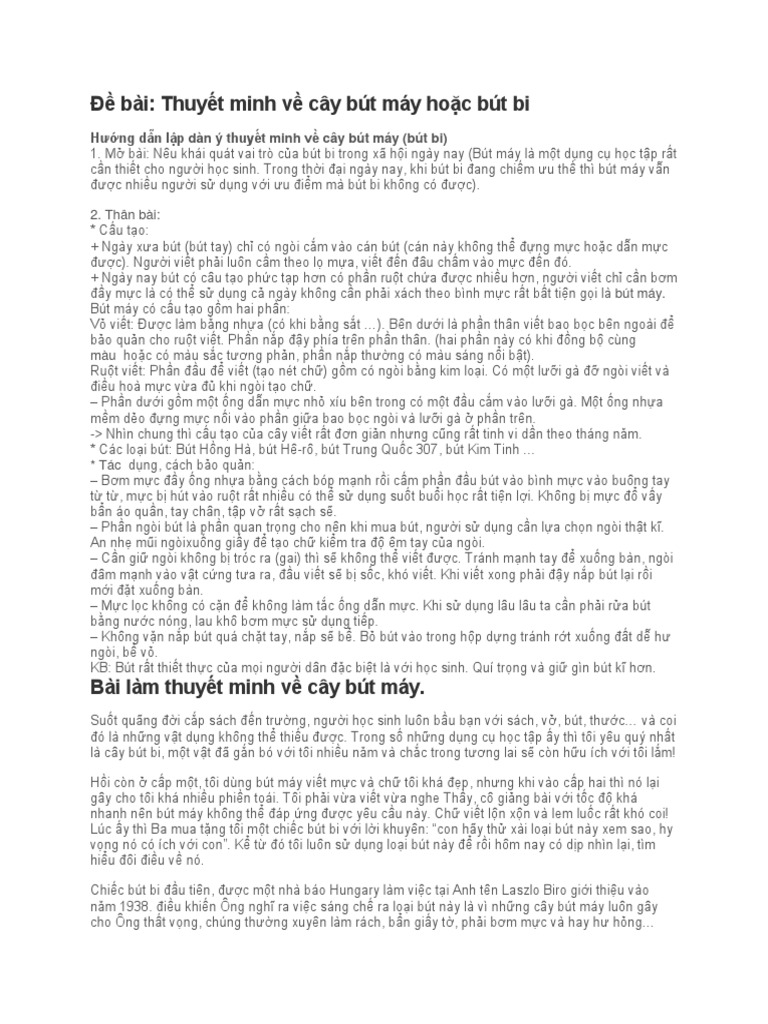 Dan Y Thuyết Minh Về Cay But Bi Hướng Dẫn Trinh Bay Bai Văn Thuyết Mi