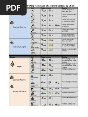 Steam Community Guide Don T Starve Crafting Reference Sheet Rog Edition Printable