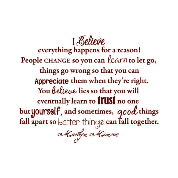 I Believe Everything Happens For A Reason People Change Vinyl Quote Large Dark Red Walmart Com Walmart Com