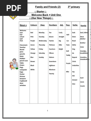 Family And Friends 2 3 Primary Starter Welcome Back Unit One Our New Things Noun S Plural Grammatical Number Free 30 Day Trial Scribd