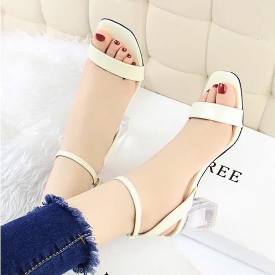 Giay Cao Got Sandal Hở Mũi Day Mảnh Da Bong đế Trong Vuong Mau Trắng đế 5cm Hang Quảng Chau Shopee Việt Nam