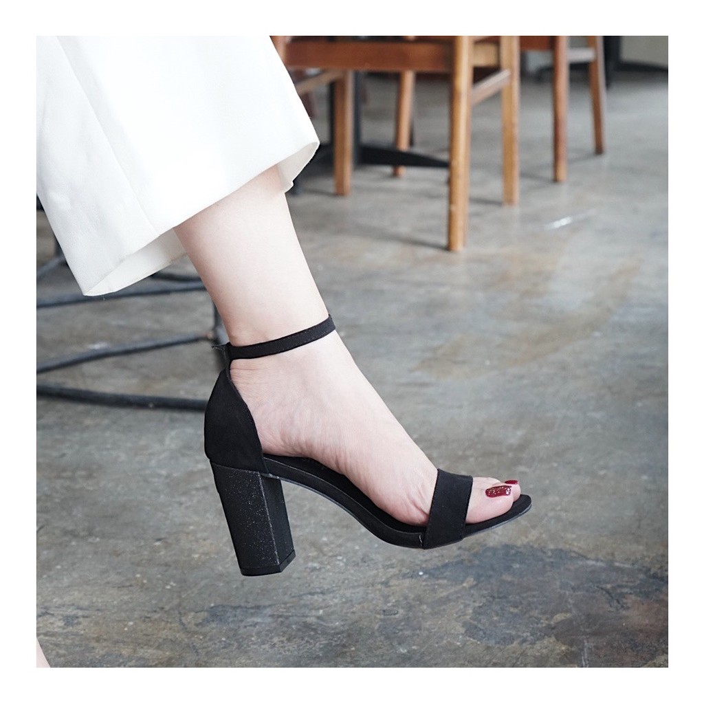Giay Sandal Cao Got Vuong Quai Ngang Kim Sa 7cm Cg17