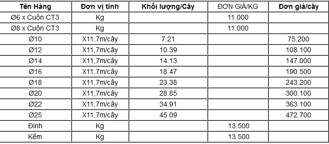 Bảng Gia Sắt Thep Xay Dựng Cập Nhật Mới Nhất
