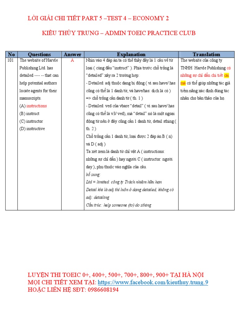 Giải chi tiết economy 4. Cuốn sách là lời giải chi tiết part 5 và part 6 của ba cuốn sáchtoeic economy rc 4 5. Nội dung cuốn ebook này bao gồm lời giải khá chi tiết cho các câu hỏi trong bộ 3 cuốn economy toeic rc vol 1 2 4. Cô hi vọng những cuốn sách tài liệu trên sẽ giúp ích nhiều cho các em khi chinh phục toeic. Giải chi tiết 10 test economy 4.