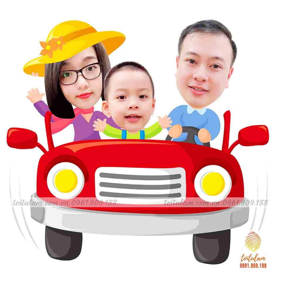 Chibi Gia đinh đi O To