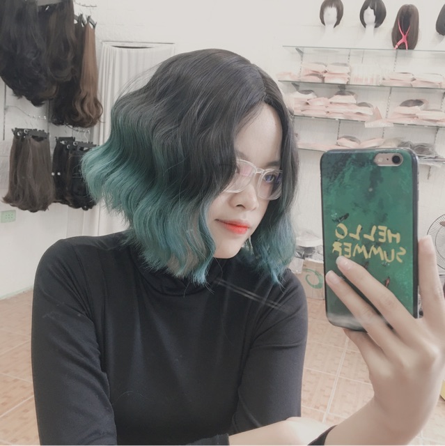 Toc Giả Toc Xoăn Song Nước Ngắn Khong Mai Mau Xanh La Giảm Chỉ Con 207 000 đ