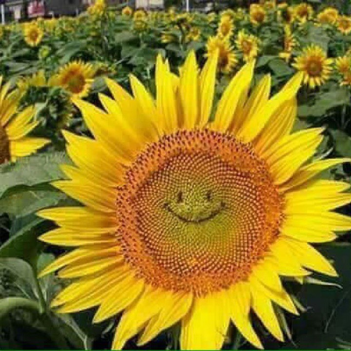 Hinh Mặt Cười Ngộ Nghĩnh Tren Canh đồng Hướng Dương
