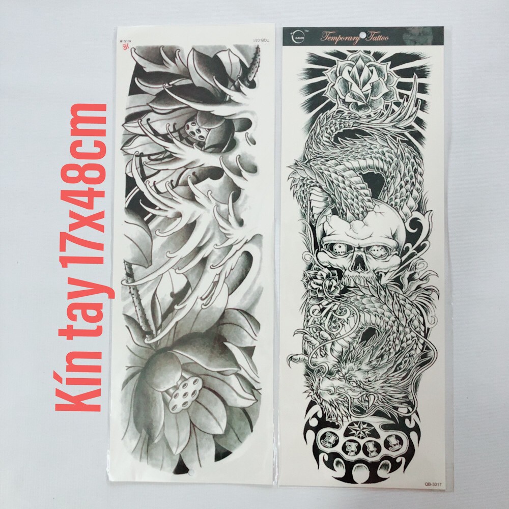Combo 2 Tấm Hinh Xăm Dan Kin Tay Hoa Va Rồng đen Trắng 17x48cm Tặng Bắp Tay Mini 10x20cm Shopee Việt Nam