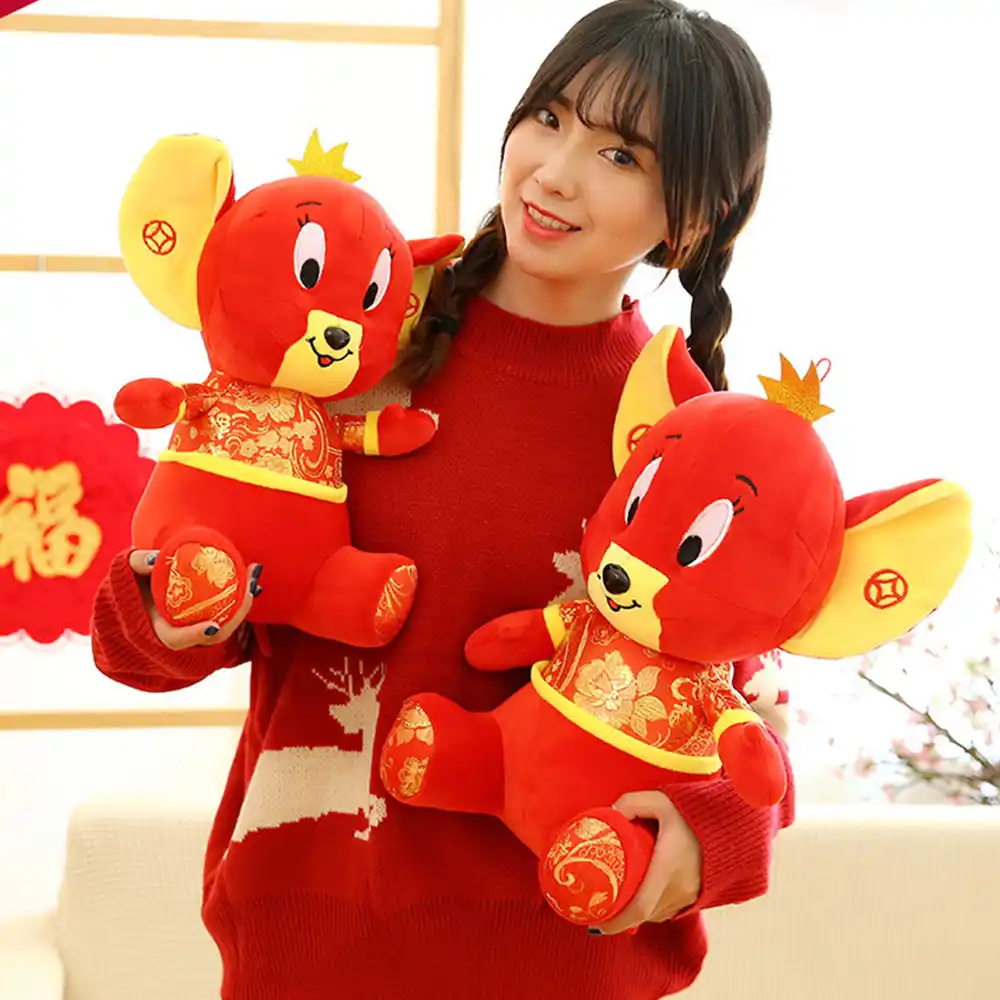 2020 Chuột Năm Hoạt Hinh Dễ Thương Trung Quốc đầm Linh Vật Chuột Sang Trọng Chuột đường Phu Hợp Với đồ Chơi Mềm Trung Quốc Mới Năm đảng Mon Qua Trang Tri
